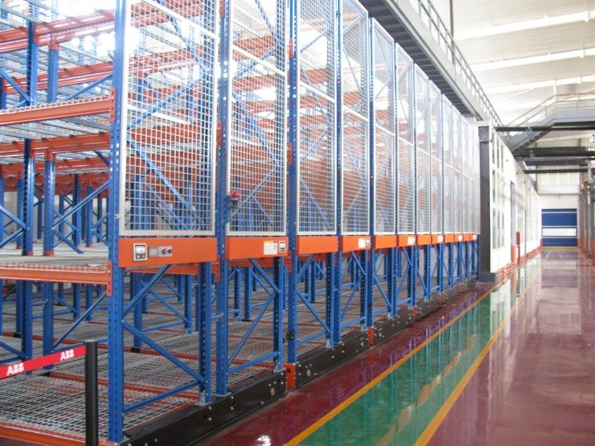 Συνήθως από χειροκίνητα κινητά ράφια διαχωριστικών και μια ράγα (εγκατεστημένη στο έδαφος ή ενσωματωμένη στο έδαφος) ένας συνδυασμός του συστήματος μετάδοσης που λειτουργεί με γρανάζι, μπορεί να επιτύχει καλό αποτέλεσμα αποθήκευσης υψηλής πυκνότητας.